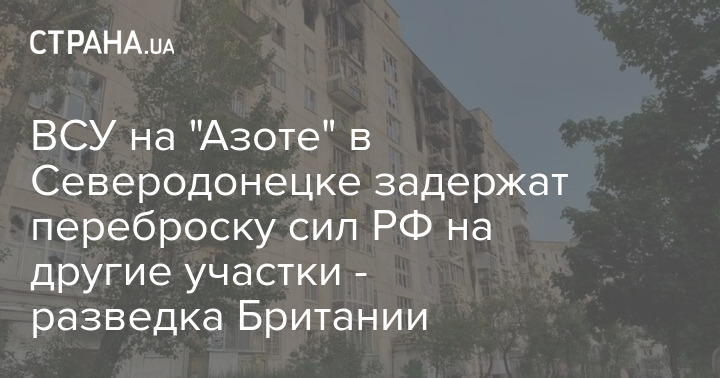 Новая сводка разведки Британии посвящена ситуации в Северодонецке. Там сообщают, что после более чем месяца ожесточенных боев российские войска получили контроль над большей частью Северодонецка.