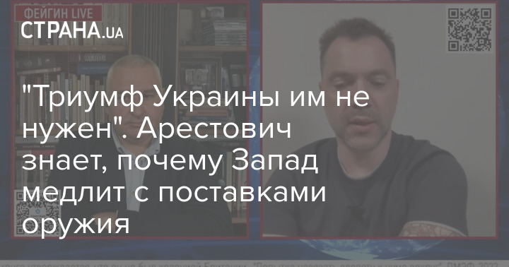 "Триумф Украины им не нужен". Арестович знает, почему Запад медлит с поставками оружия
