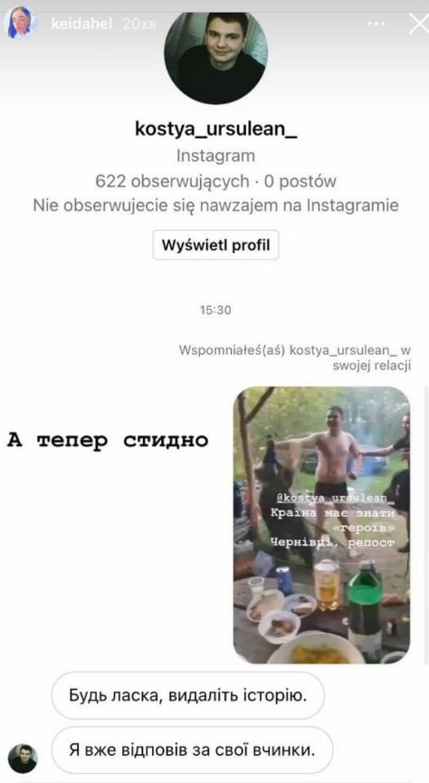 В личных сообщениях другим пользователям Урсулян написал, что "уже ответил за свои поступки" и попросил удалить видео.