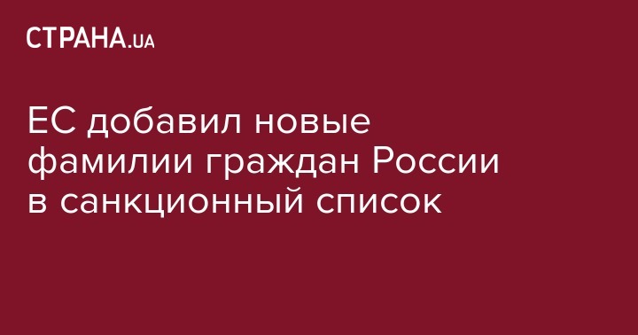 Евросоюз добавил новые имена в список индивидуальных санкций, направленных против граждан России и Украины, передает РИА "Новости" со ссылкой на представителя Совета ЕС. "Добавлены новые имена в санкционный список", — сказал собеседник агентства.