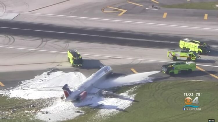 В аэропорту Майами, США, во время посадки загорелся самолет, у которого произошла поломка шасси. На борту было 126 человек, но удалось обойтись без жертв, только три человека получили легкие ранения.