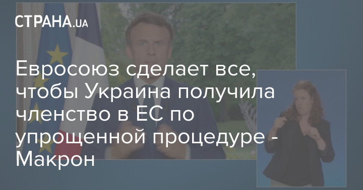 "Мы понимаем, что Украина сейчас втянута в конфликт. Сейчас мы делаем все возможное, чтобы Украина по упрощенной процедуре смогла стать членом ЕС", – сказал Макрон.