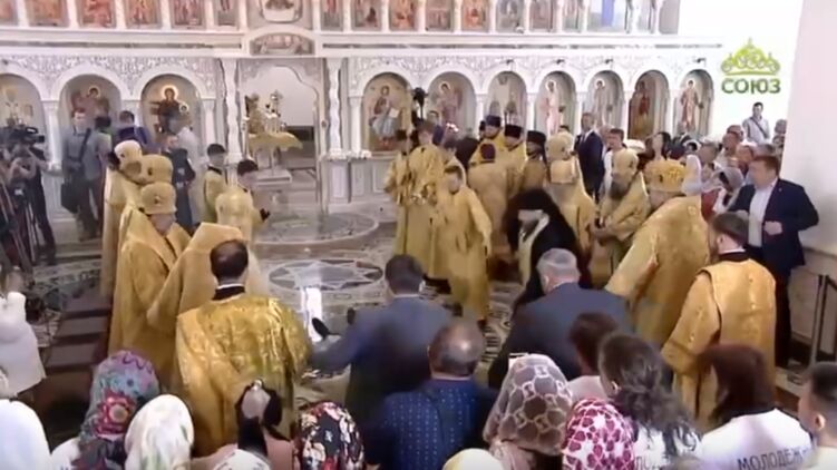 Патриарх Русской православной церкви Кирилл поскользнулся и упал во время освящения храма в Новороссийске. Видео с богослужения транслировал канал "Союз".