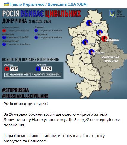 22.04 О восьми погибших и 21 раненый в Лисичанске сообщает глава Луганской ОВА Сергей Гайдай в своем тг-канале.