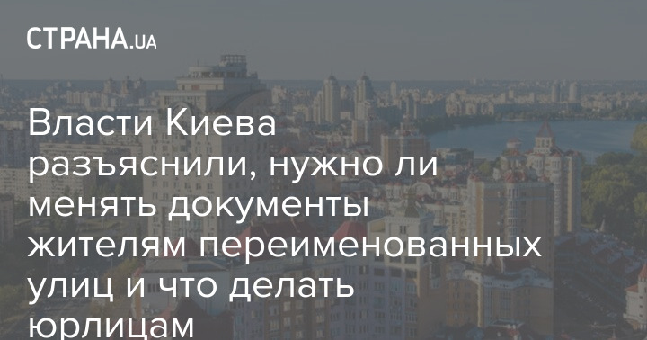 Киевляне, которые живут на улицах, попавших под переименование , не должны будут менять документы, так как новое название улицы не является изменением места жительства, сообщают в КГГА.