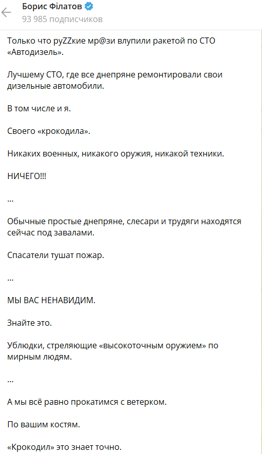 Во вторник, 28 июня, российские войска обстреляли Днепр и Днепропетровскую область. Вражеская ракета попала в СТО.