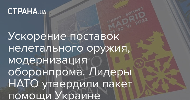 Лидеры НАТО на саммите в Мадриде утвердили пакет помощи Украине, включающий ускорение поставок нелетального вооружения, усиление киберзащиты и модернизацию оборонной промышленности.