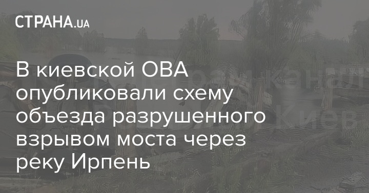 В киевской ОВА опубликовали схему объезда разрушенного взрывом моста через реку Ирпень