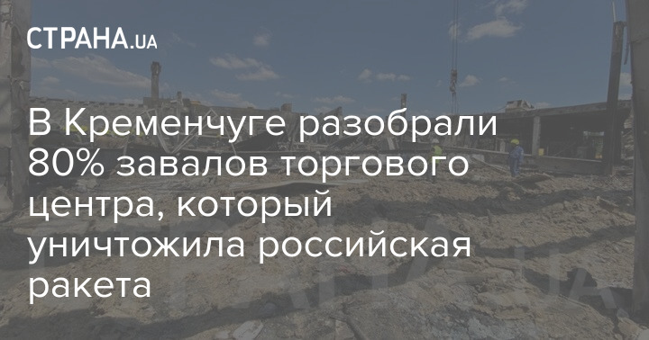 В Кременчуге разобрали 80% завалов торгового центра, который уничтожила российская ракета