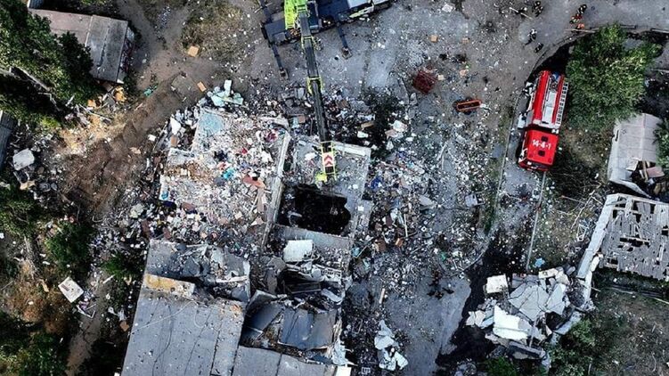 Спасатели добавили, что продолжают разбирать завалы и показали фото последствий удара по жилому дому.