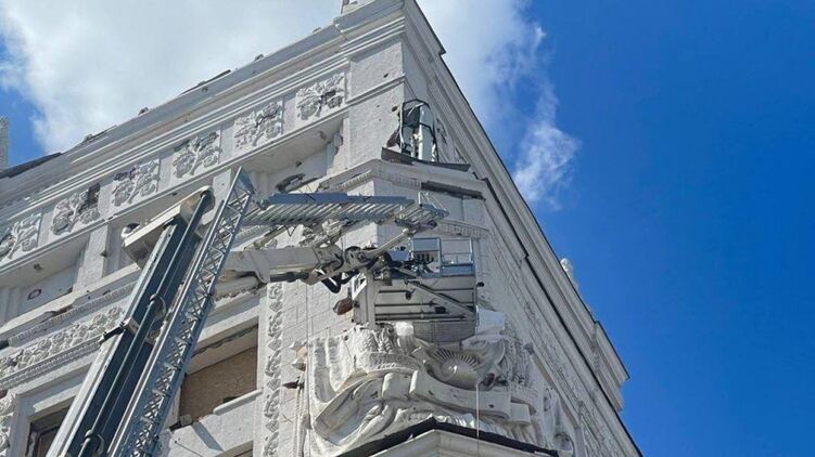 С Харьковского горсовета начали демонтировать серп и молот, о чем накануне распорядился мэр города Игорь Терехов.