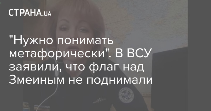 Пресс-секретарь Оперативного командования "Юг" Наталья Гуменюк уточнила свои слова о поднятом флаге Украины над островом Змеиный. Она говорит, что ее слова о поднятом флаге следует "понять метафорически", а опубликованное фото - старое.