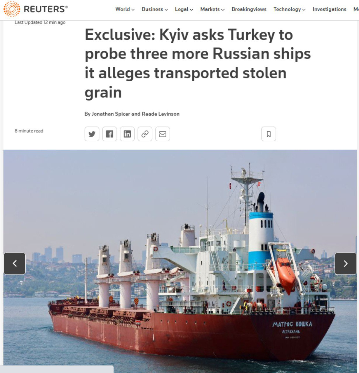 В Офисе генпрокурора просят Турцию проверить три российских судна с украденным зерном из Херсона - Reuters