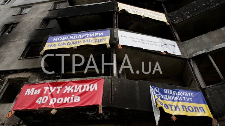 В Бородянке жители разбомбленных многоквартирных домов требуют построить новое жилье на месте разрушенного, а не где-то в другом месте. Владельцы квартир в домах, которые были разрушены в ходе боевых действий, вывесили из своих окон плакаты с надписями: "Новые квартиры на этом месте", "Мы здесь жили 40 лет".