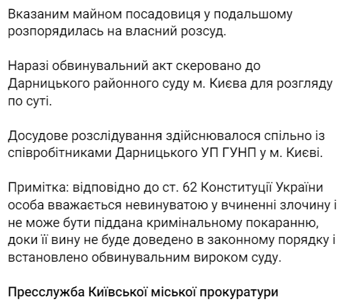 Об этом сообщает прокуратура Киева в Телеграм-канале.