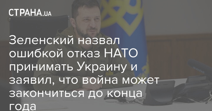 Зеленский назвал ошибкой отказ НАТО принимать Украину и заявил, что война может закончиться до конца года
