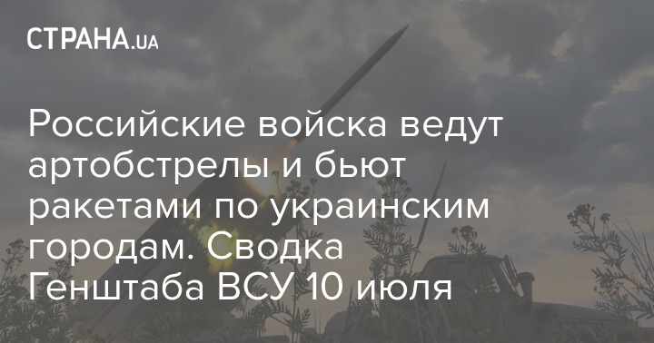 В Генеральном штабе Вооруженных сил Украины опубликовали оперативную сводку с фронта боевых действий по состоянию на 18:00 10 июля, в которой говорится, что российские войска ведут артиллерийские обстрелы и наносят ракетные удары по украинским городам.