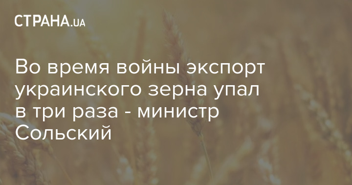 Во время войны экспорт украинского зерна упал в три раза - министр Сольский