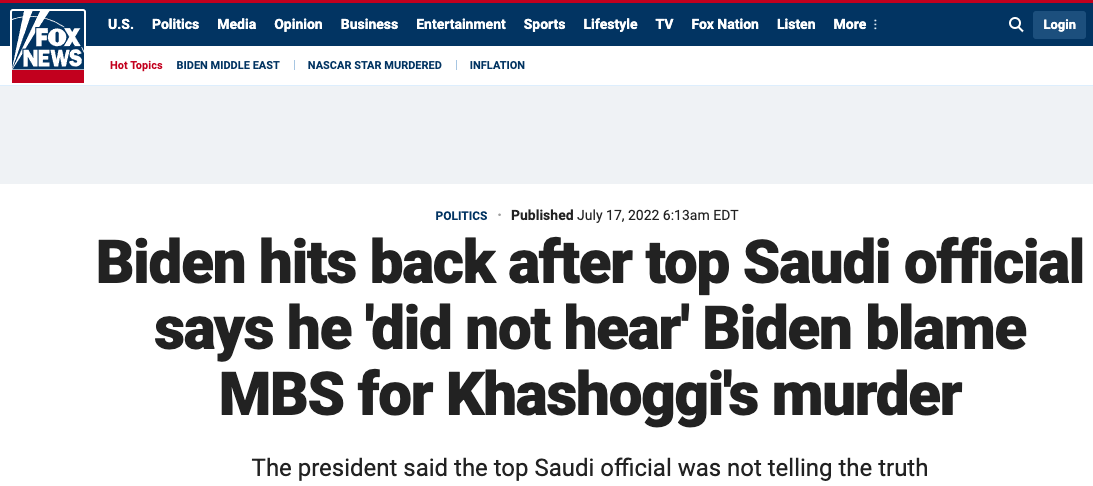 Президент США Джо Байден после встречи с наследным принцем Саудовской Аравии заявил журналистам, что в разговоре сказал Мухаммеду бен Салману о его ответственности за убийство журналиста Джамаля Хашогги в 2018 году в здании консульства Саудовской Аравии в Стамбуле.