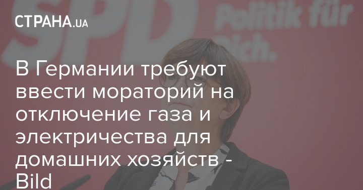 Сообщается, что лидер Социал-демократической партии Германии Саския Эскен выступила в поддержку требования ввести мораторий на отключение газа и электричества для домашних хозяйств.