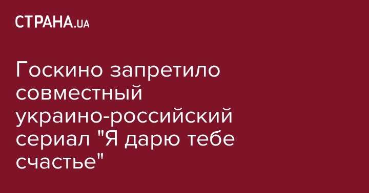 В четверг, 10 ноября Государственное агентство Украины по вопросам кино (Госкино) приняло решение аннулировать прокатное удостоверение и отменить государственную регистрацию телевизионного сериала "Я дарю тебе счастье", совместно выпущенного киношниками России и Украины. Об этом указано на странице Госкино в Facebook.