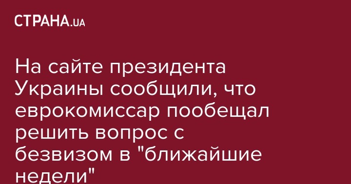 На сайте президента Украины сообщили, что еврокомиссар пообещал решить вопрос с безвизом в "ближайшие недели"