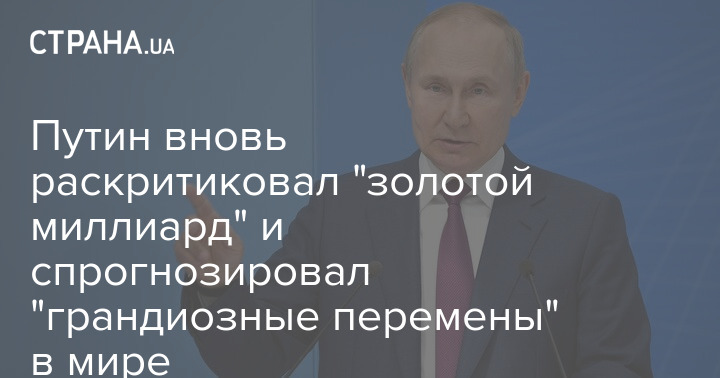 Президент России Владимир Путин вновь заявил о "грандиозных изменениях", которые грядут в мире, а также обрушился на страны Запада (вновь заявив о "несправедливости модели тотального доминирования "золотого миллиарда"). Об этом он говорил, выступая на Форуме стратегических инициатив.