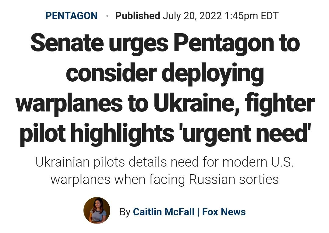 07:59 Ряд сенаторов США призвали Пентагон предоставить Украине современные истребители.