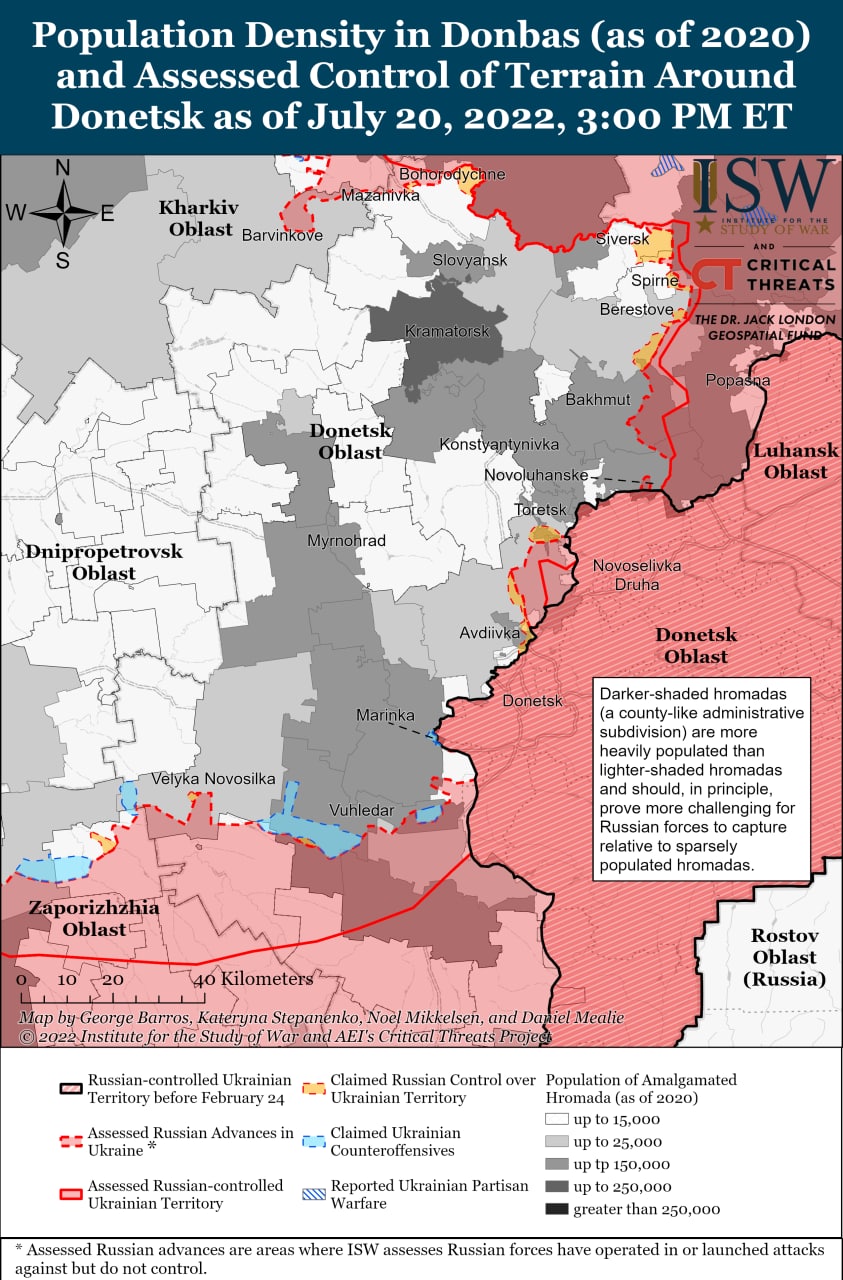 - Глава МИД РФ Сергей Лавров заявил, что РФ добивается захвата территорий за пределами Донбасса, подтверждая оценку ISW о том, что Кремль стремится расширять область захвата.