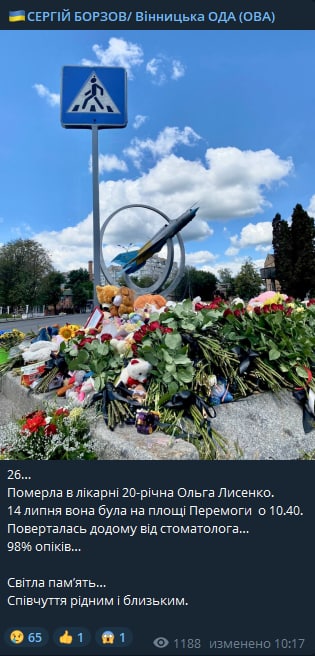 10:34 Число погибших в результате ракетного удара по Виннице выросло до 26 человек.
