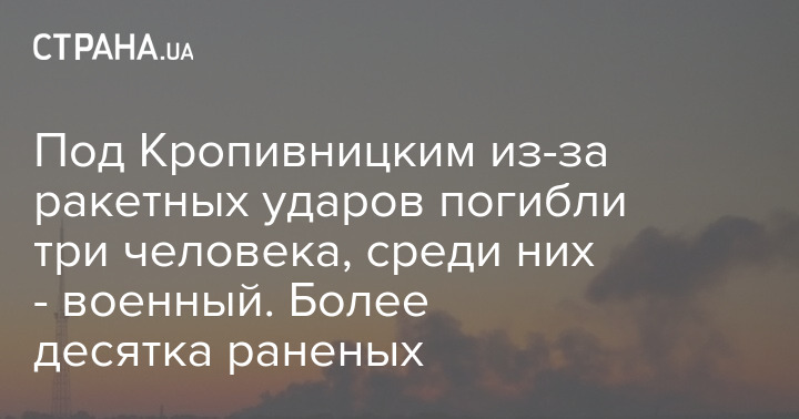В результате ракетных ударов по Кировоградской области (вблизи Кропивницкого) три человека погибли, среди которых один военнослужащий. 13 - ранены, среди них девять военных.