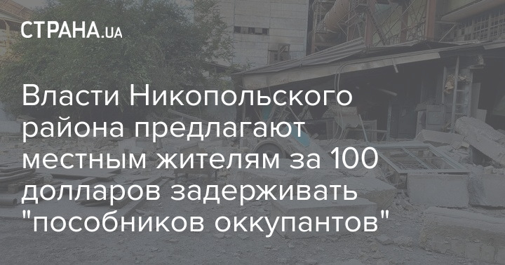 Власти Никопольского района предлагают местным жителям за 100 долларов задерживать "пособников оккупантов"