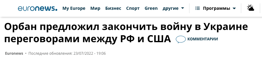 "Необходима новая стратегия, которая должна быть сосредоточена на мирных переговорах, а не на попытках выиграть войну", - заявил Орбан.