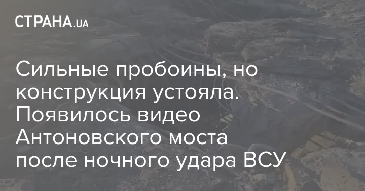 Сильные пробоины, но конструкция устояла. Появилось видео Антоновского моста после ночного удара ВСУ