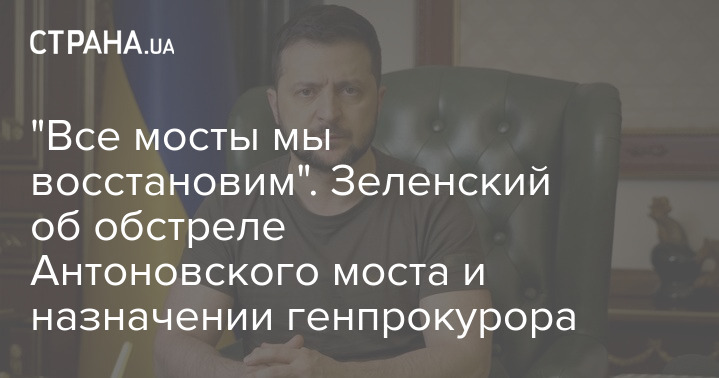 "Все мосты мы восстановим". Зеленский об обстреле Антоновского моста и назначении генпрокурора
