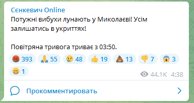О серии мощных взрывов в Николаеве сообщил мэр города Александр Сенкевич. Подробности обстрела он не приводит.