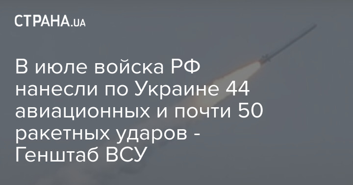 В июле российская армия нанесла 49 ракетных и 44 авиационных удара по Украине, а результате которых были полностью разрушены 28 объектов.
