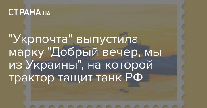 "Укрпочта" выпустила марку "Добрый вечер, мы из Украины", на которой трактор тащит танк РФ