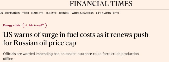 Администрация президента США Джо Байдена пытается убедить крупных импортеров нефти поддержать план по ограничению цен, которые они готовы платить за российскую нефть. Если этого не произойдет, "нас ждет разрушительный рост цен на топливо".