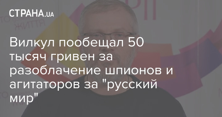 "Я гарантирую, что если по вашей информации будет задержан реальный шпион, я лично выплачу человеку, который смог предоставить информацию, 50 тысяч гривен. Если это будет агитатор за "русский мир" (только подчеркиваю - нужно подтверждение, лучше аудио- или видеофиксация) - 10 тысяч гривен", - сказал он.
