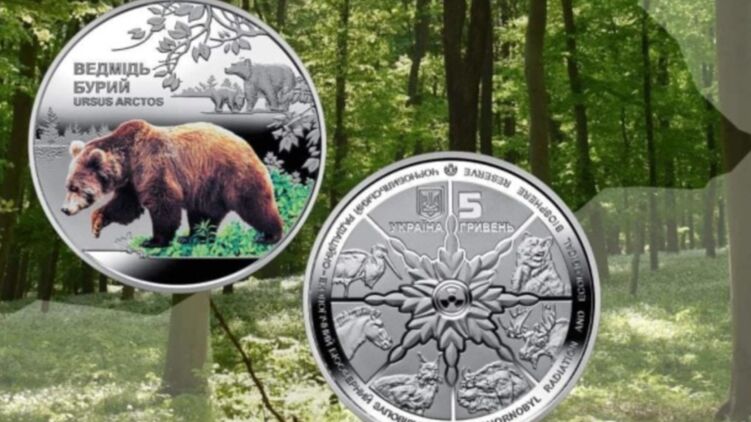 Национальный банк Украины ввел в обращение с 29 июля новую памятную монету "Чернобыль. Возрождение. Бурый медведь" из серии "Флора и Фауна Украины".