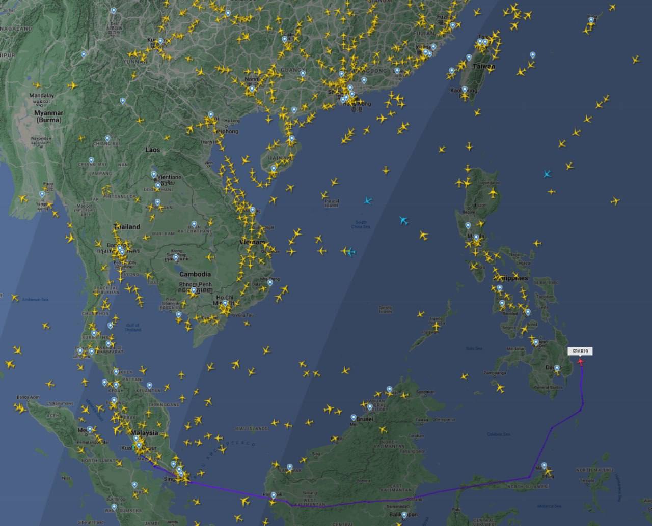 11:55 Самолет с Нэнси Пелоси приближается к острову Борнео. Пока это далеко в стороне от Тайваня.