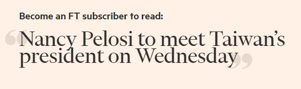 20:12 Ненси Пелоси завтра встретится с президентом Тайваня, пишет The Financial Times.