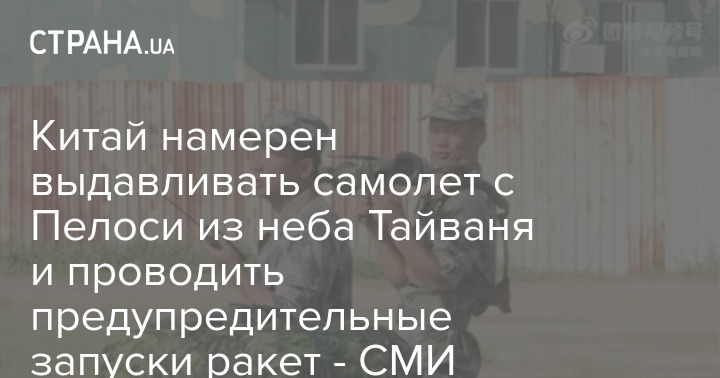 Китай намерен перехватывать и выдавливать из воздушного пространства Тайваня самолет со спикером Палаты представителей Конгресса США Нэнси Пелоси, а также проводить предупредительные пуски ракет.