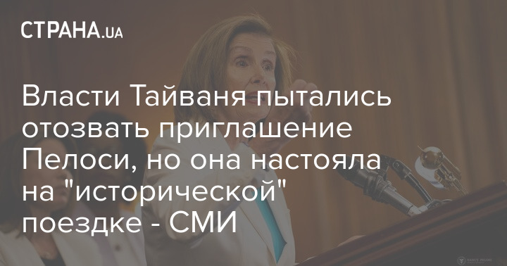 Власти Китайской Республики (Тайваня) пытались отозвать приглашение спикера Палаты представителей Конгресса США Нэнси Пелоси на остров из-за обострившейся ситуации, но она вызвала посла Тайваня в США и настояла на поездке, чтобы совершить что-то "историческое".