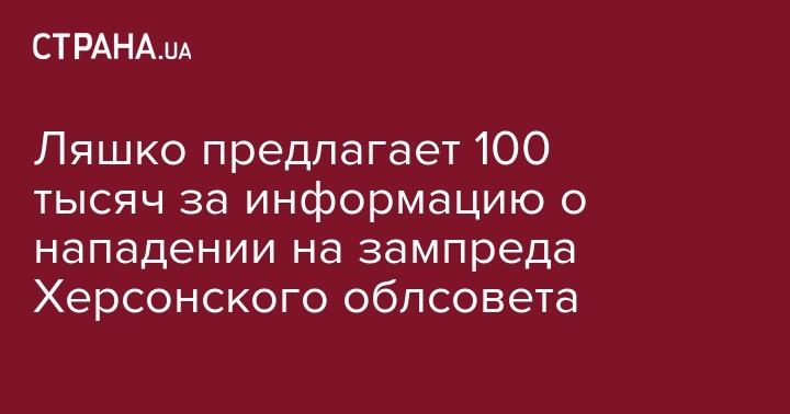 Лидер Радикальной партии Олег Ляшко обещает 100 тыс. грн за информацию о нападении на первого зампреда Херсонского облсовета Василия Зеленчука. Об этом он сообщил на своей странице в Facebook.