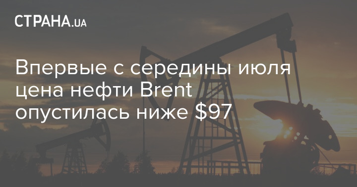 Цена нефти Brent на лондонской бирже ICE опустилась ниже $97 за баррель впервые с 14 июля.