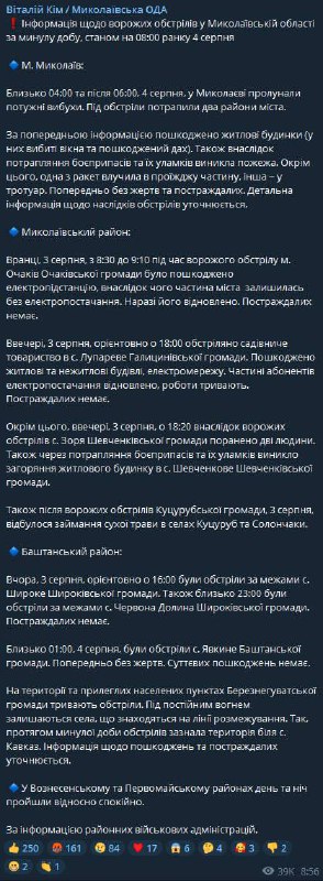 Напомним, Николаев находится под постоянными обстрелами. Вчера в городе под удар попали многоэтажные дома, аптека, магазины и причал.