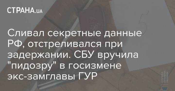 Сливал секретные данные РФ, отстреливался при задержании. СБУ вручила "пидозру" в госизмене экс-замглавы ГУР