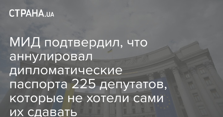 В МИД официально подтвердили признание недействительными 225 дипломатических паспортов народных депутатов, как и сообщала накануне "Страна". Потому что те игнорировали просьбу сдать документы на хранения.